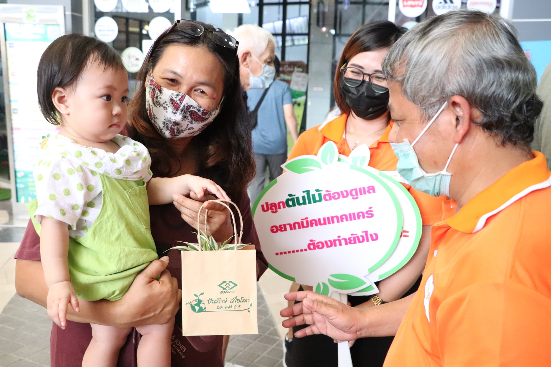 การรถไฟฟ้าขนส่งมวลชนแห่งประเทศไทย หรือ รฟม. ร่วมกับ โครงการรถไฟฟ้าสายสีส้ม ช่วงศูนย์วัฒนธรรมแห่งประเทศไทย - มีนบุรี (สุวินทวงศ์) จัดกิจกรรม "รฟม. ปันรักษ์ เพื่อโลก ลด PM 2.5” แจกไม้ฟอกอากาศให้กัประชาชนตามแนวสายทาง โครงการรถไฟฟ้าสายสีส้มฯ เพื่อเป็นส่วนหนึ่งในการเพิ่มพื้นที่สีเขียว นอกจากนี้ยังเป็นการเตรียมพร้อมรับมือกับสภาพอากาศปิดในช่วงฤดูหนาวที่กระแสลมเคลื่อนที่ได้ไม่สะดวกและส่งผลให้เกิดฝุ่นละอองขนาดเล็ก (PM 2.5) โดยสร้างการตระหนักให้กับทุกคนได้มีส่วนร่วม รักษ์โลก รักษ์ต้นไม้ เริ่มที่ตัวเรา ในการรักษาดูแลต้นไม้ ตามจุดต่างๆ ดังนี้ :